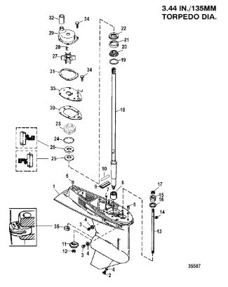 Корпус карданного вала, редуктор 2-х тактного ПЛМ MERCURY 5 M Серийный номер от 0G710613 до 0T894438